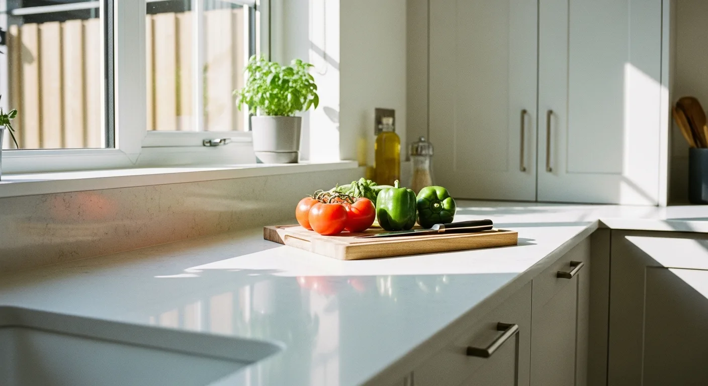 W kuchniach małych, pozbawionych okna lub z ekspozycją północną, jasny blat jest niemal koniecznością. Powierzchnie w odcieniach bieli, beżu czy jasnej szarości skutecznie odbijają światło, optycznie powiększając i rozjaśniając całe wnętrze. W efekcie nawet słabo doświetlona kuchnia staje się bardziej przyjazna i funkcjonalna.